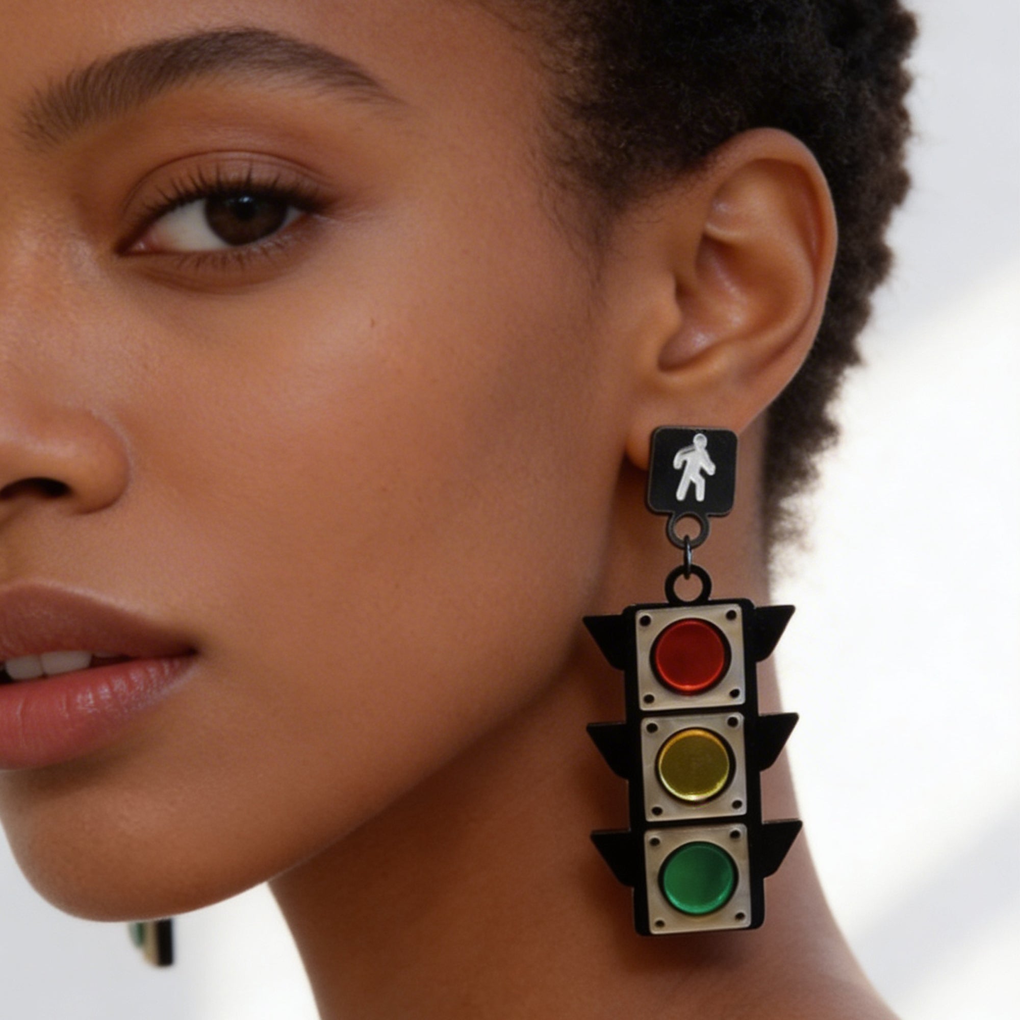 In 1923, Garrett Morgan introduced the yellow light, creating a pause that helps prevent accidents and save lives. These earrings translate that everyday moment into wearable art, blending history, design, and purpose.