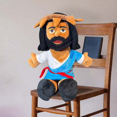 Clothed in white with a blue tunic and red sash, Mighty Messiah steps in to bring love and light wherever he goes. More than a plush, he’s a blessing to your space.
