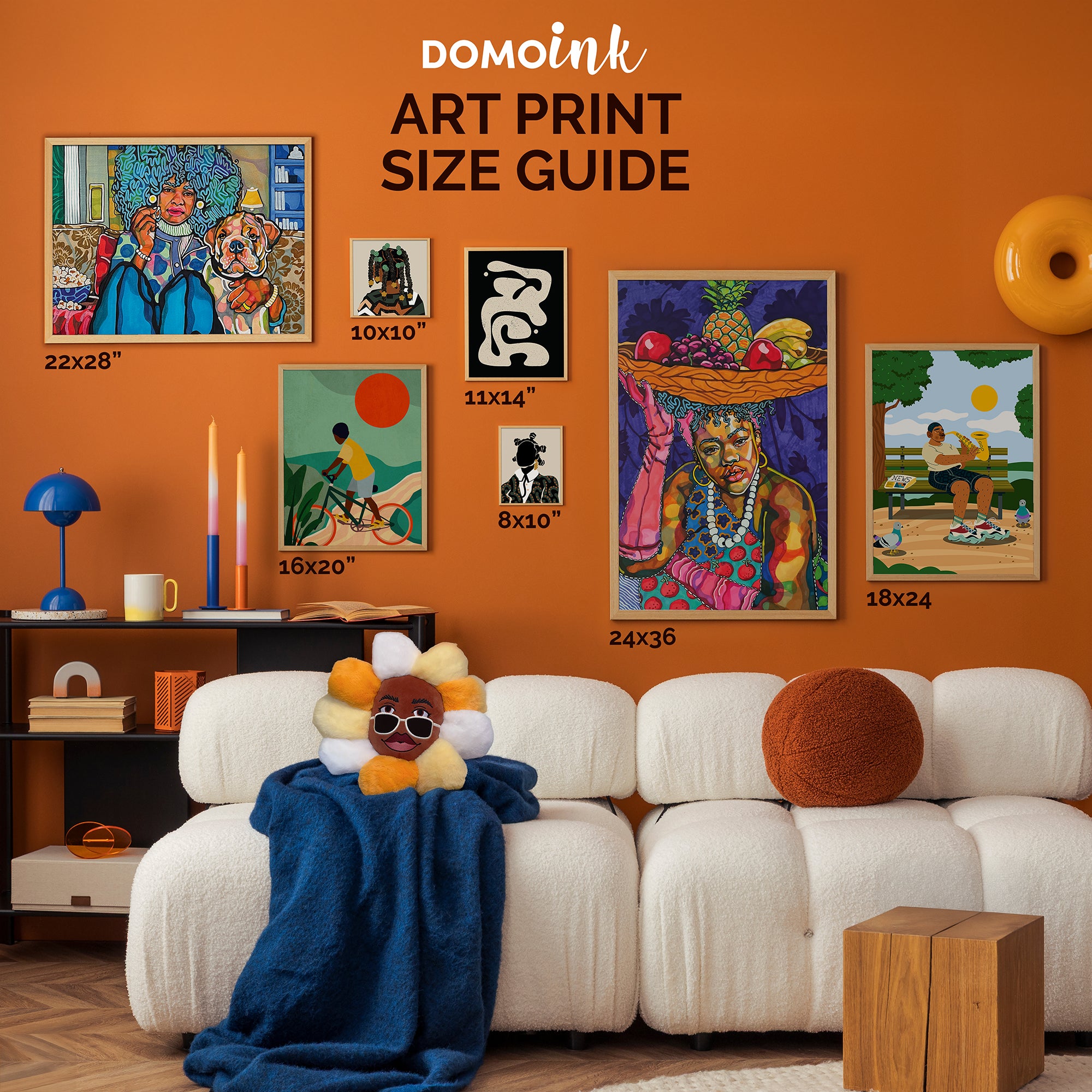 Every DomoINK art print is imagined and illustrated by Domonique Brown, an award-winning artist from Pomona, CA. Her bold, vibrant work fuses modern portraiture with rich cultural textures—drawing inspiration from streetwear, fabric patterns, and everyday life. From abstract to detailed portraits, each piece is crafted to allow others to express themselves authentically.