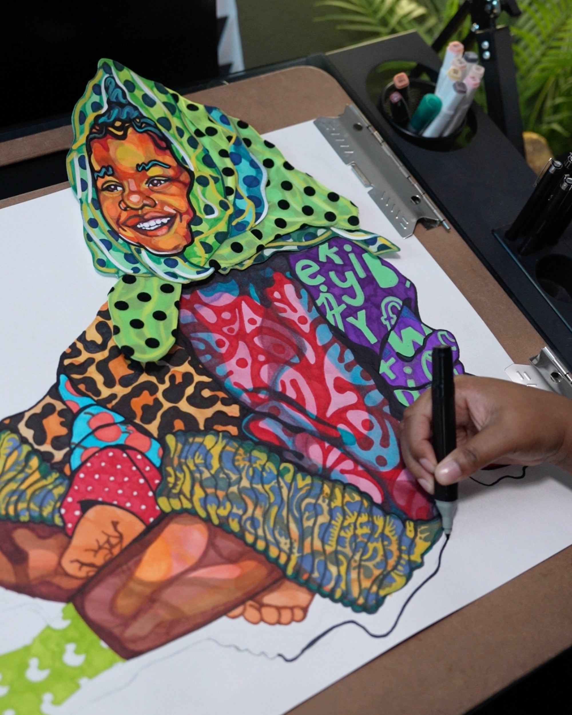 Domonique Brown's original artwork can be yours to own. This unique art has attracted celebrities to collect, featured in popular TV shows like HBO's Insecure, and used in global campaigns.