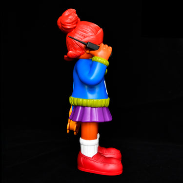 Her flower-shaped purse and old-school cell phone complete the look. Every detail from her curly ponytail to her signature attitude reminds you that Peaches is more than a Cracker Mac. She is a whole mood that pays homage to the generation that mixed books, beats, and coolness effortlessly.
